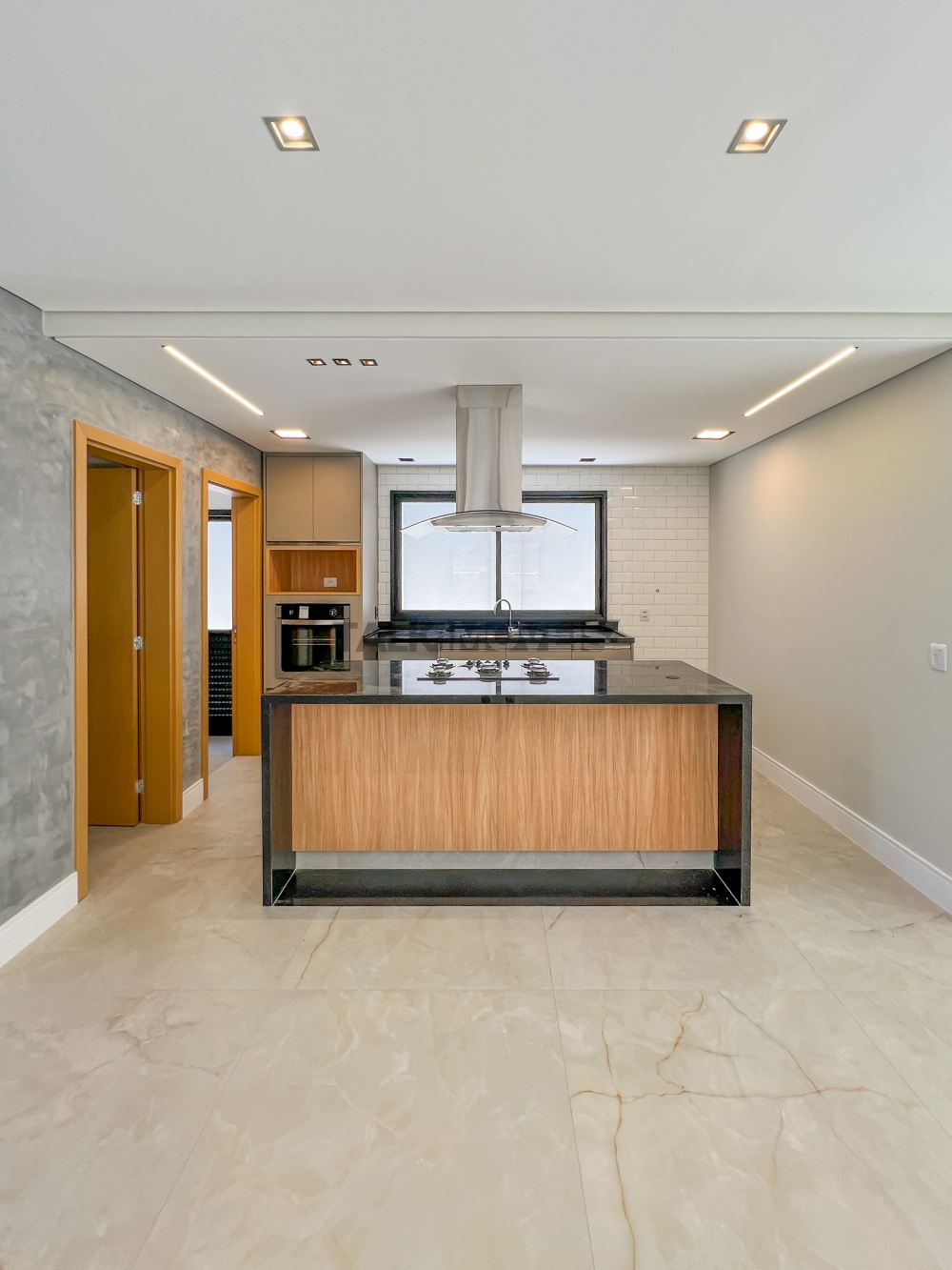 Espaço Gourmet com marcenaria e coifa instaladas