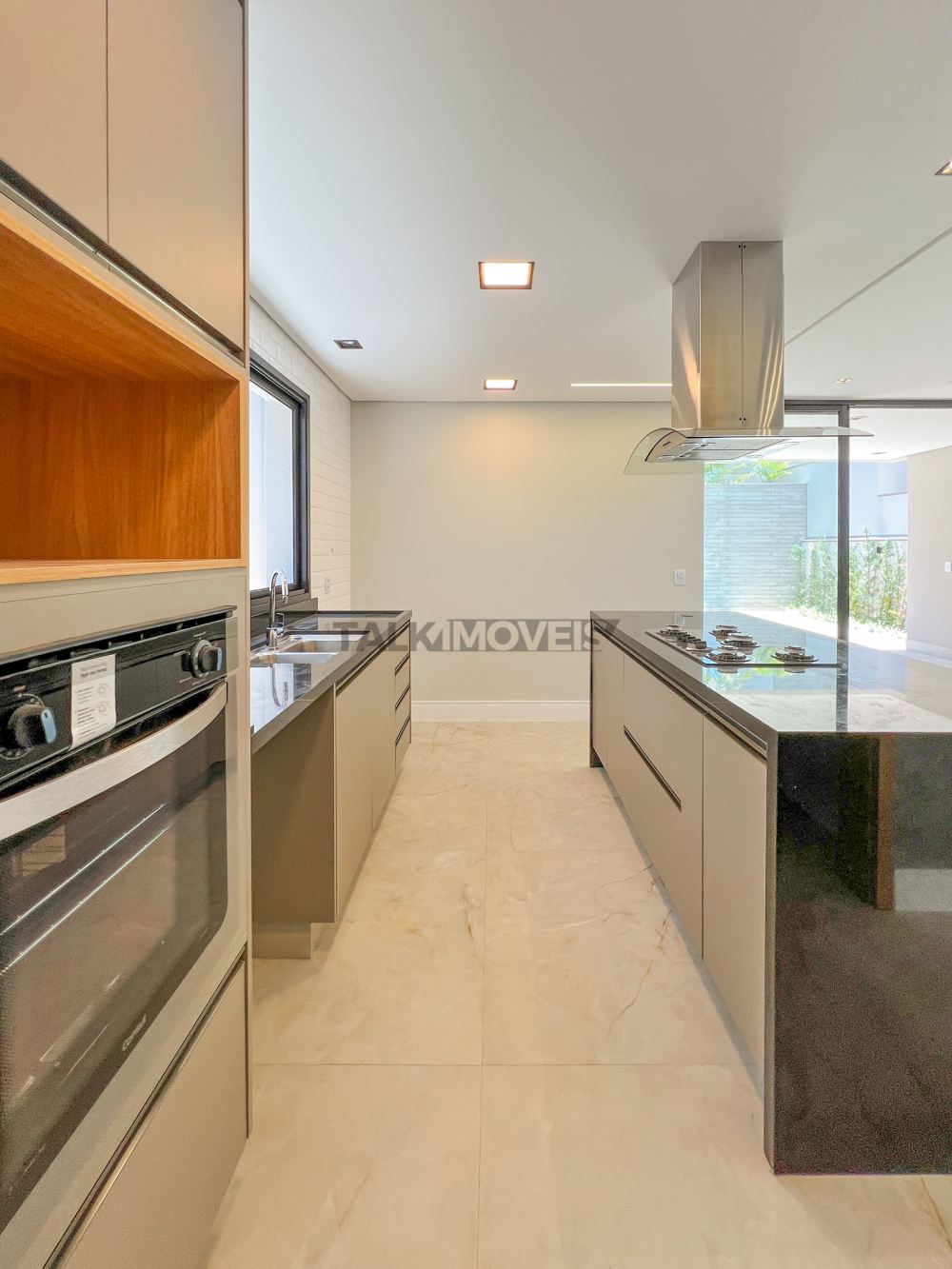 Cozinha com marcenaria completa e com fogão, forno e coifa instalados