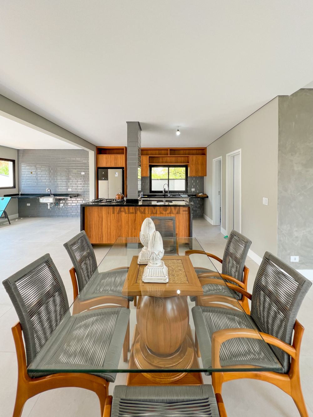 Cozinha integrada com espaço Gourmet e sala