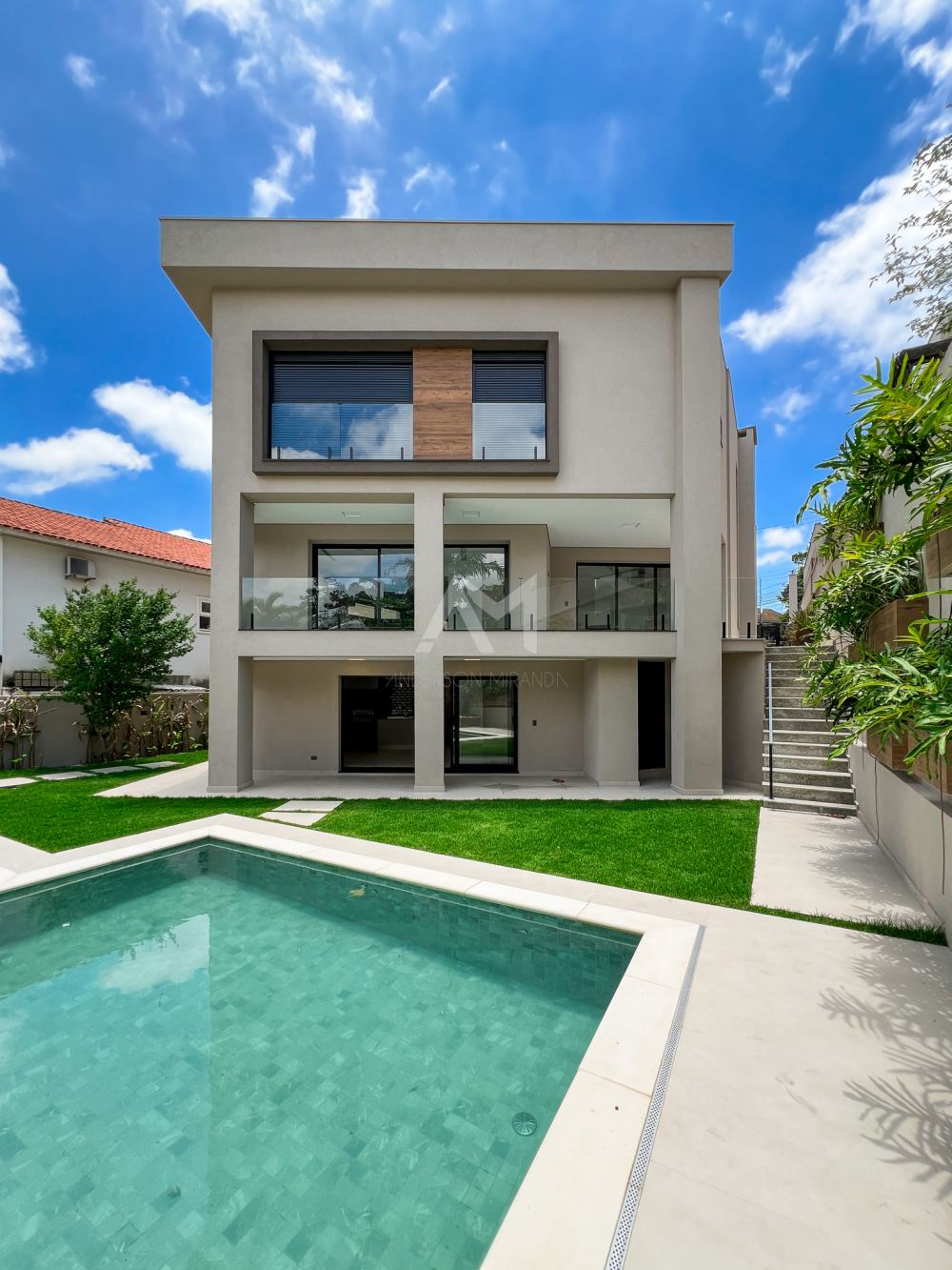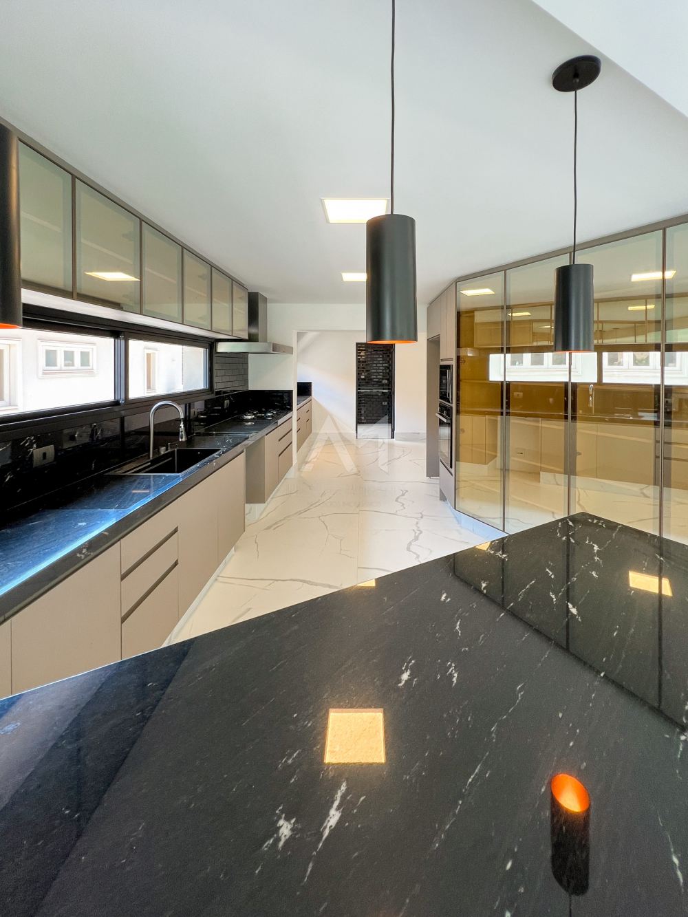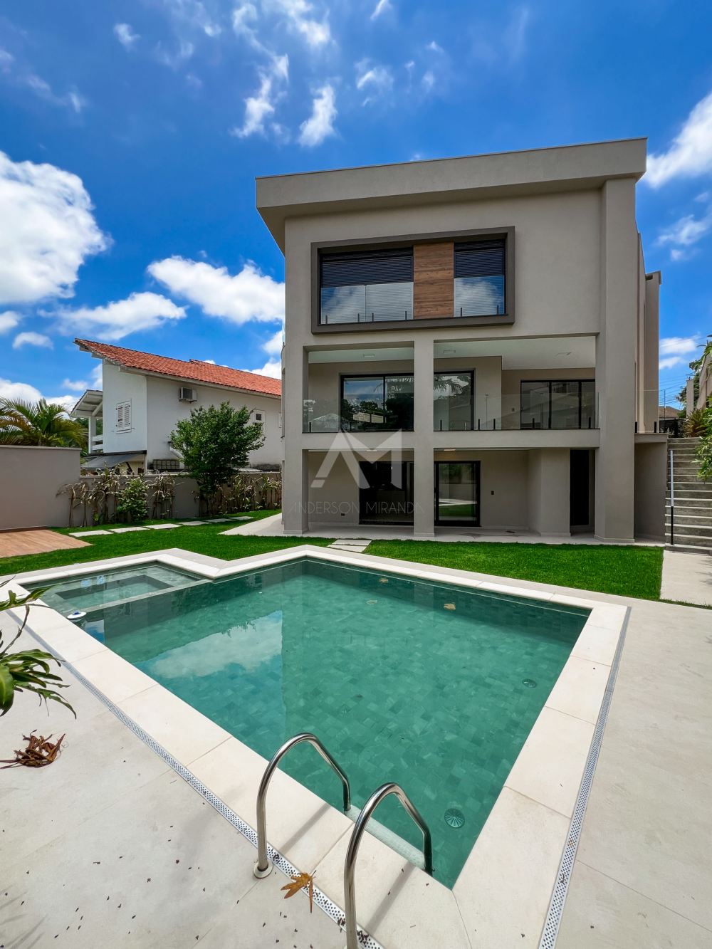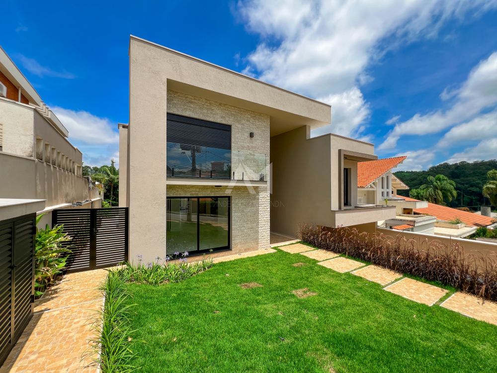 Nesta Residência de estilo moderno, encontramos detalhes e acabamentos de alta qualidade. Os ambientes são bem distribuídos em 630 m² de área construída e possuem esquadrias de grandes dimensões, proporcionando muita luz natural.
