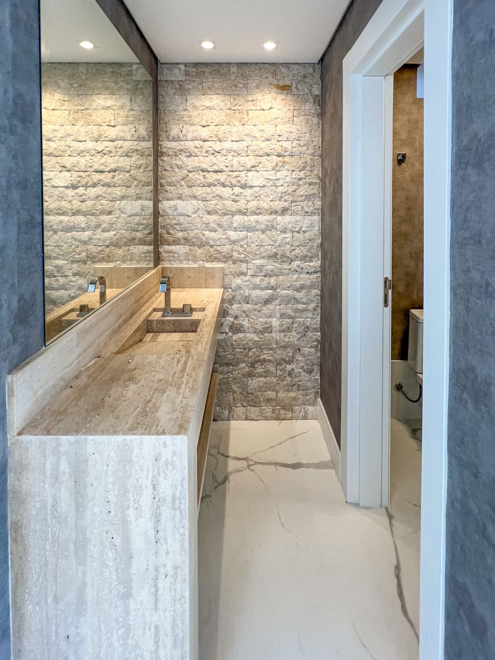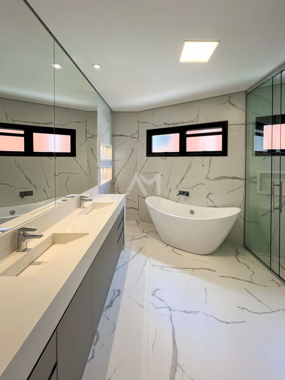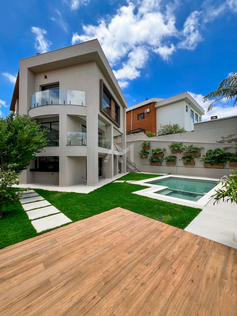 Nesta Residência de estilo moderno, encontramos detalhes e acabamentos de alta qualidade. Os ambientes são bem distribuídos em 630 m² de área construída e possuem esquadrias de grandes dimensões, proporcionando muita luz natural.