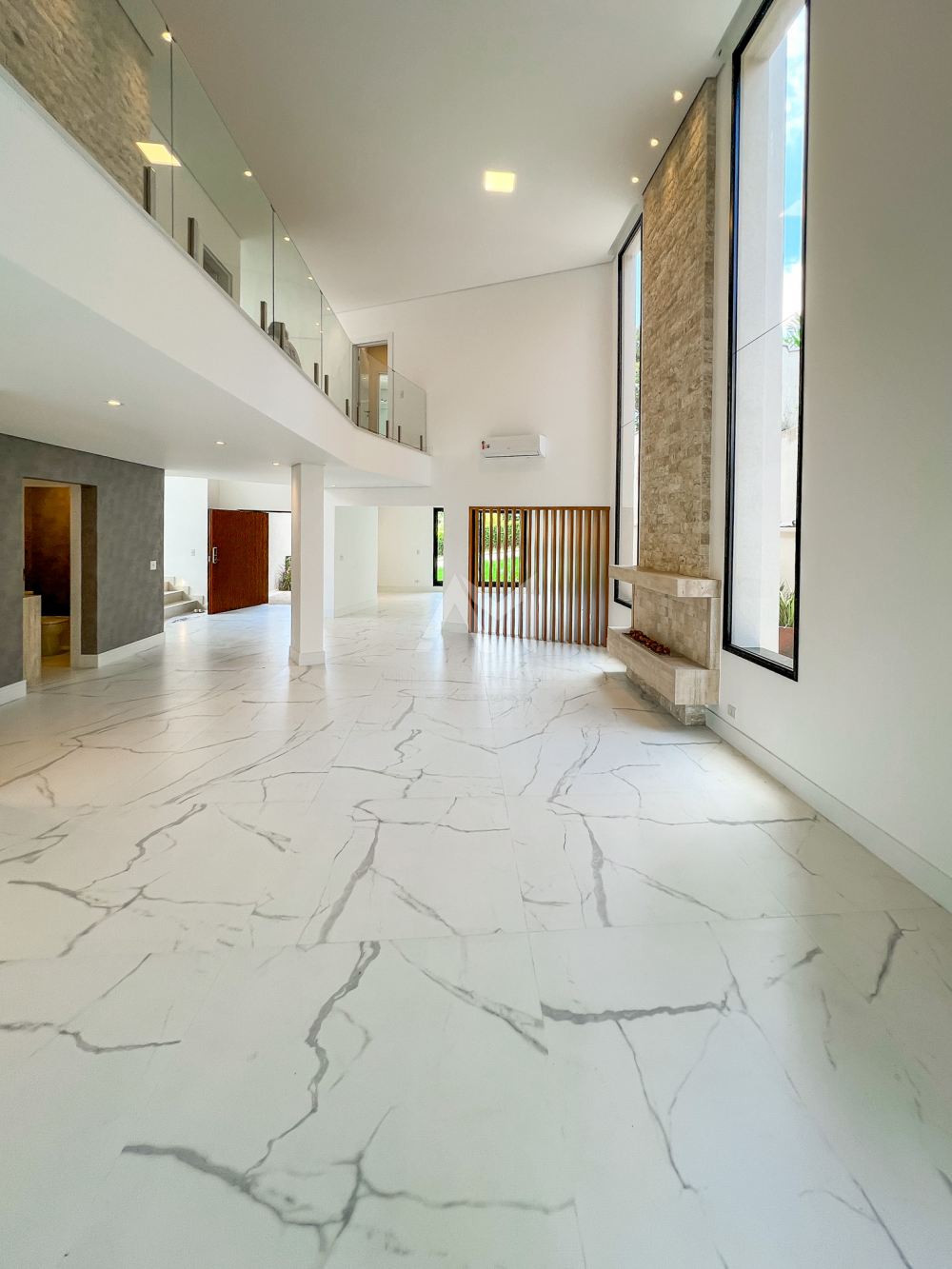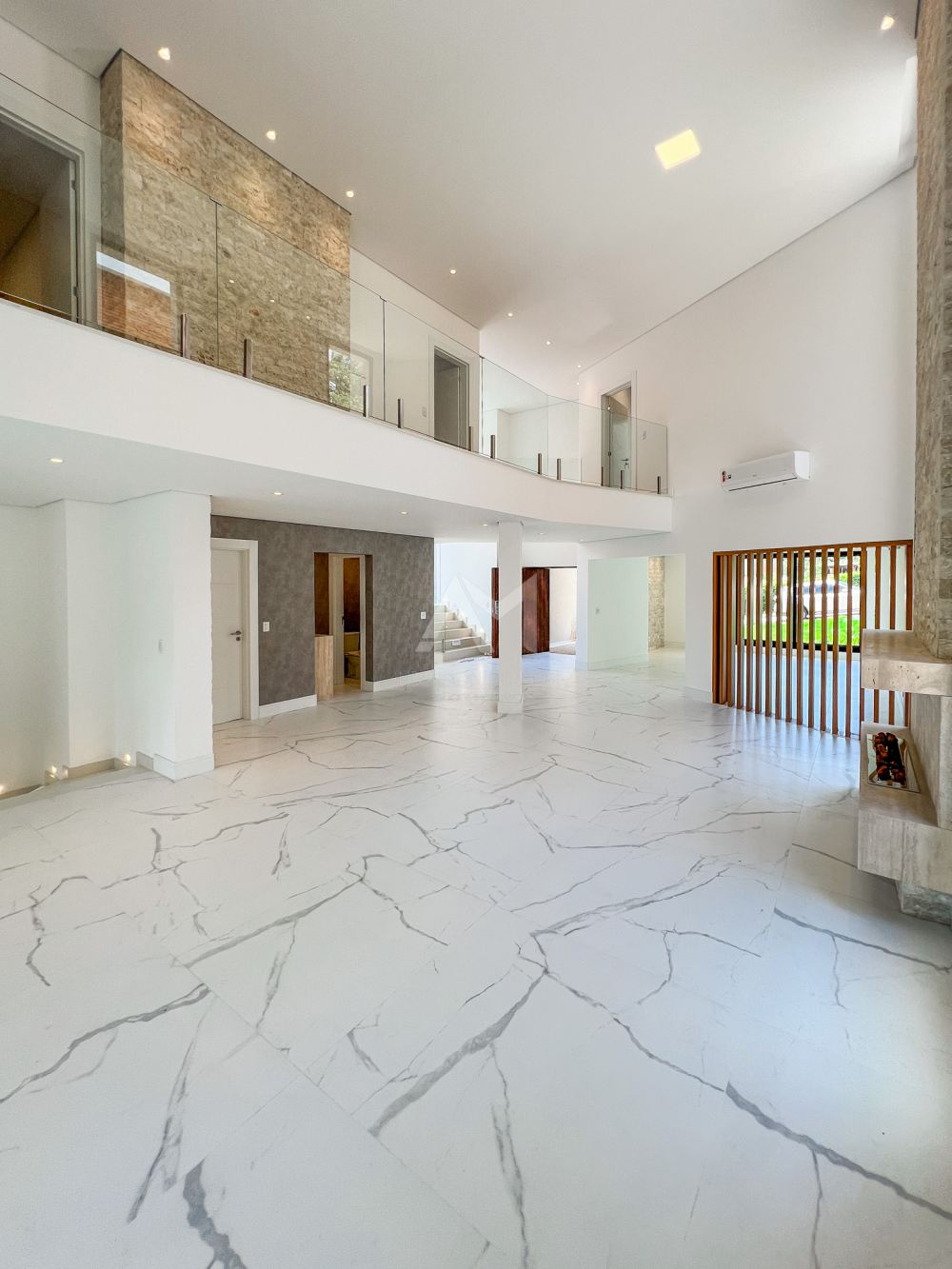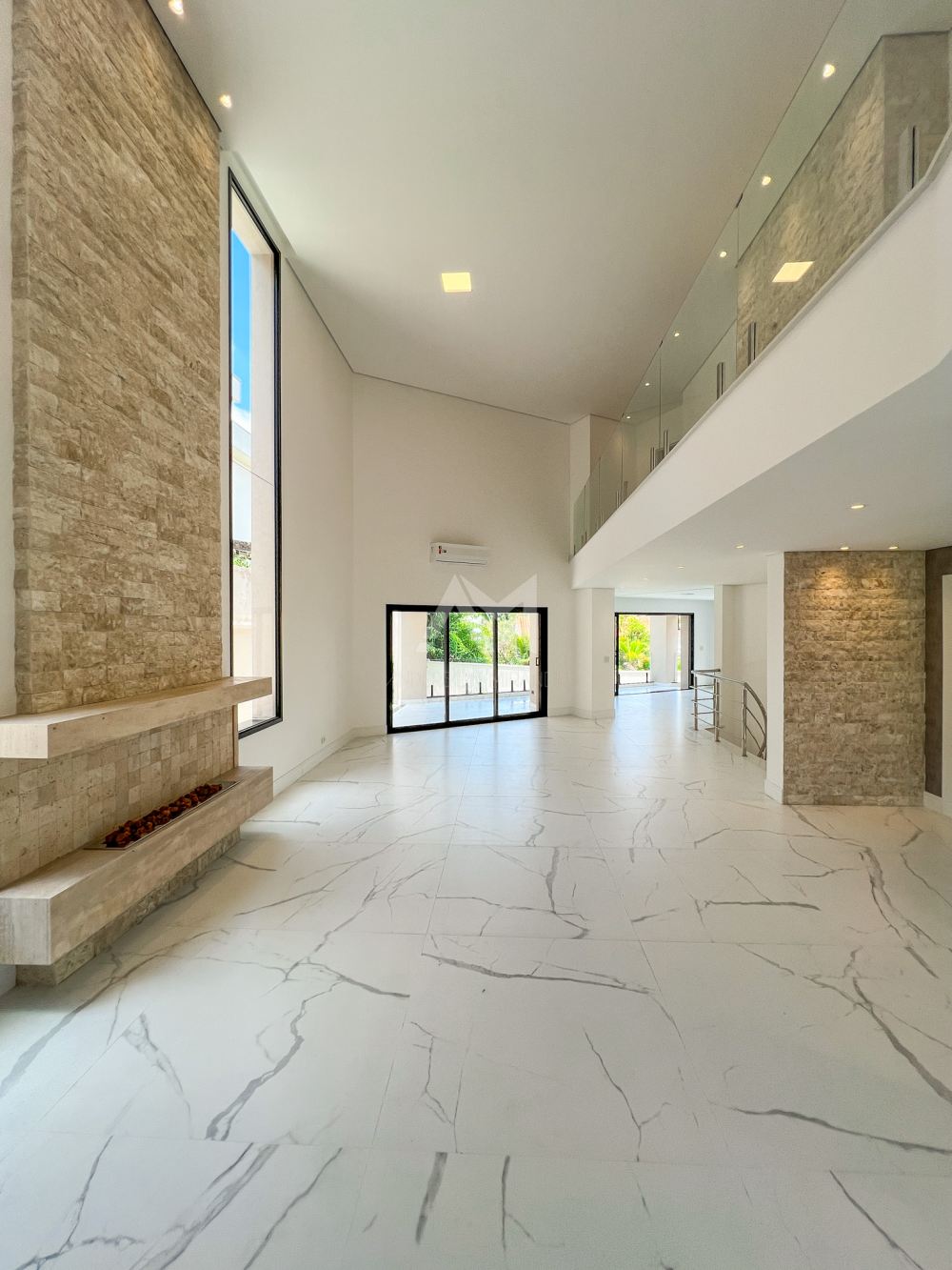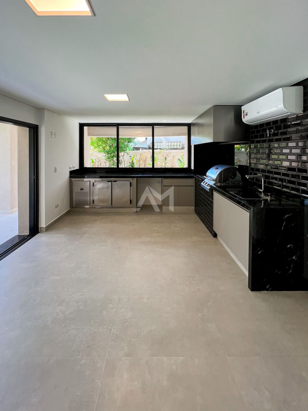 São 4 suítes com armários embutidos, além de ar-condicionado em todos os cômodos. O living é espaçoso, com pé-direito alto, e possui uma lareira. Há também closets, um escritório e cozinha completa, equipada com móveis de primeira qualidade. A garagem comporta até 5 carros.