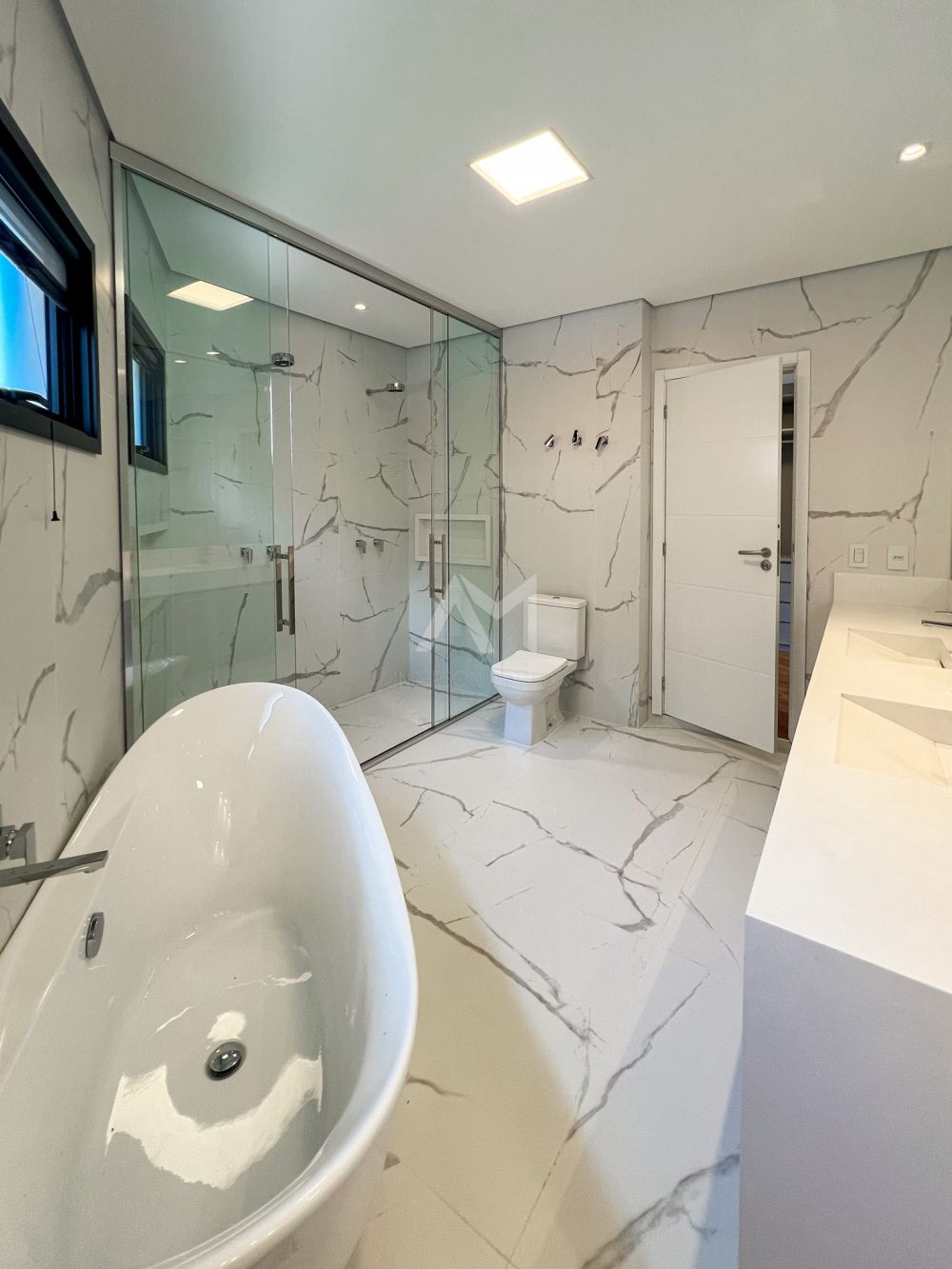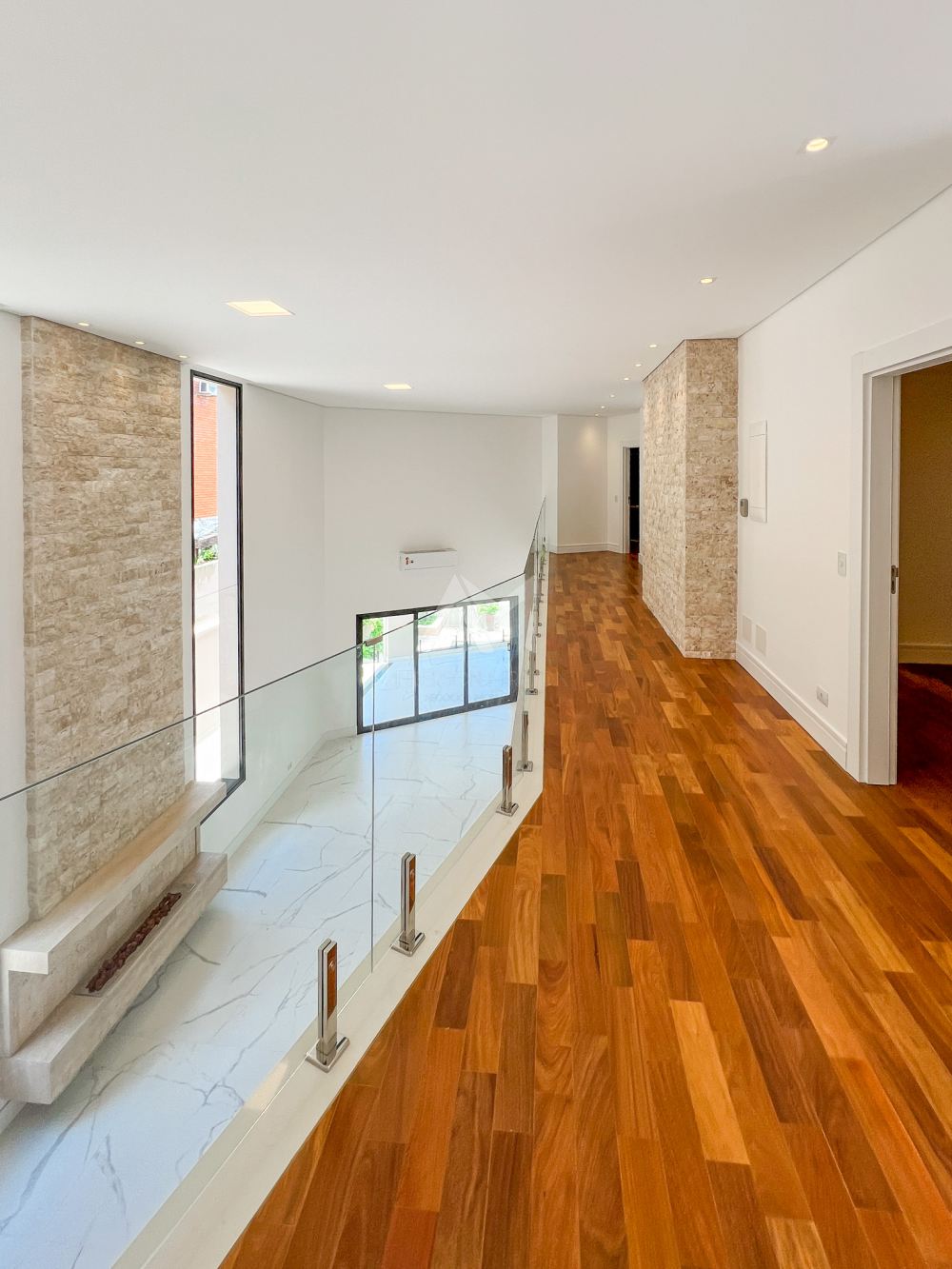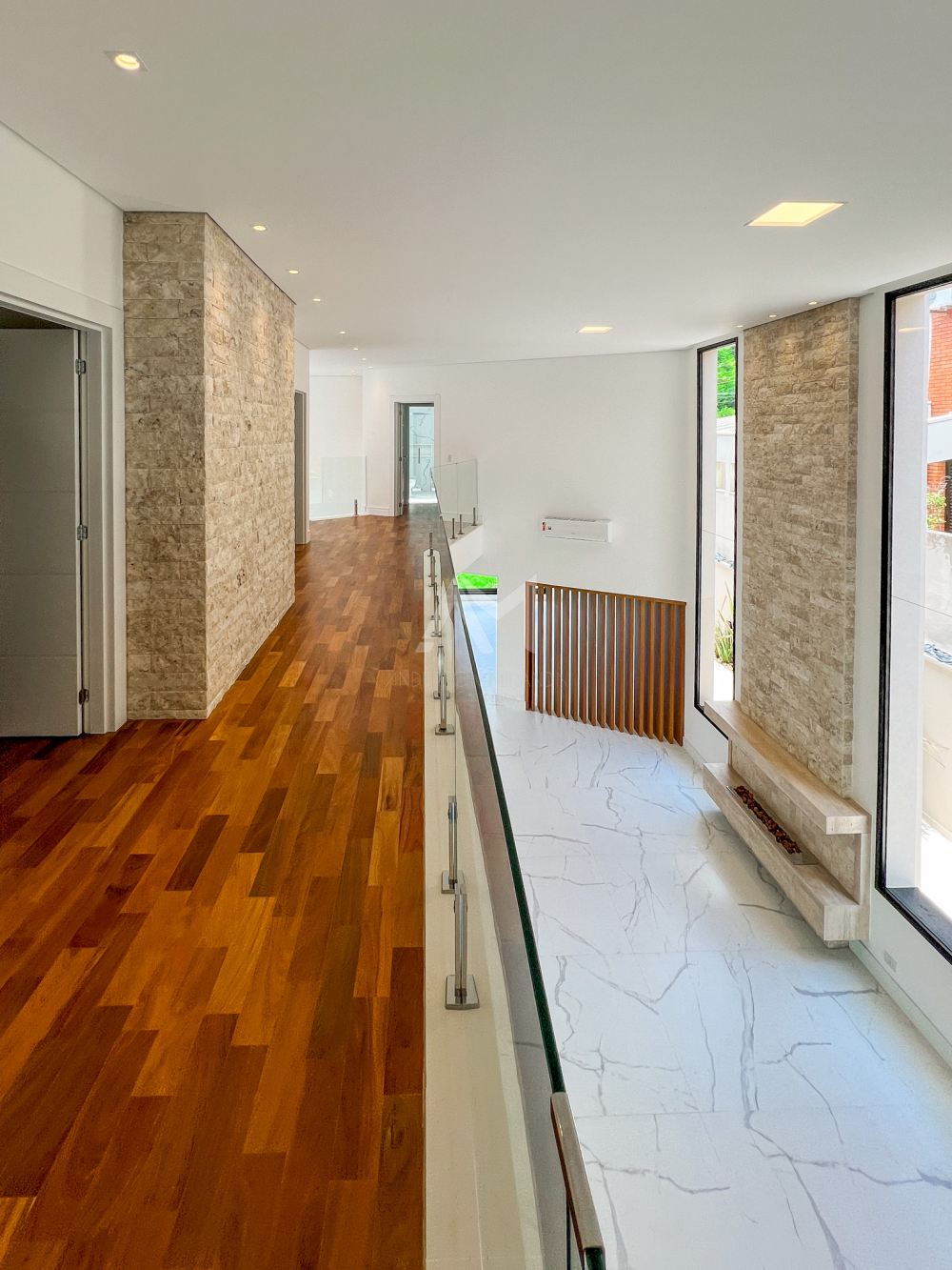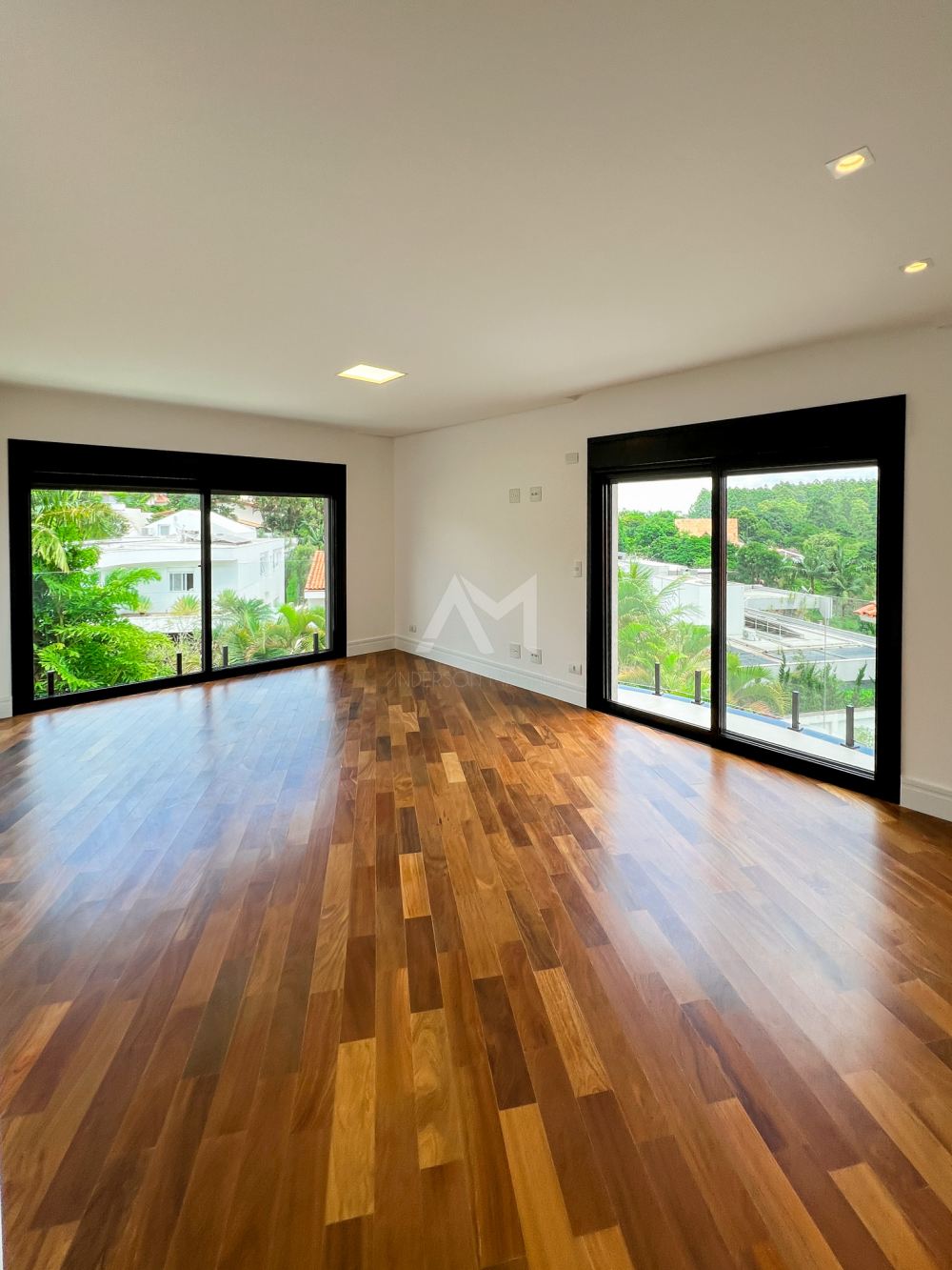 São 4 suítes com armários embutidos, além de ar-condicionado em todos os cômodos. O living é espaçoso, com pé-direito alto, e possui uma lareira. Há também closets, um escritório e cozinha completa, equipada com móveis de primeira qualidade. A garagem comporta até 5 carros.