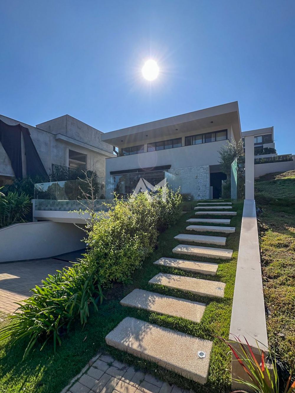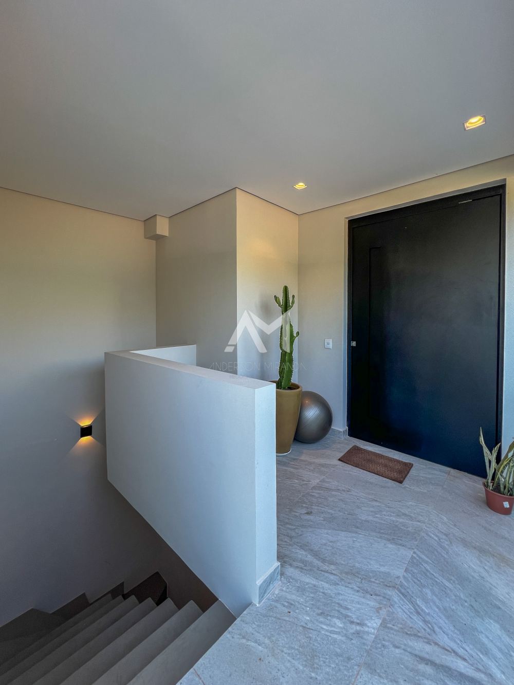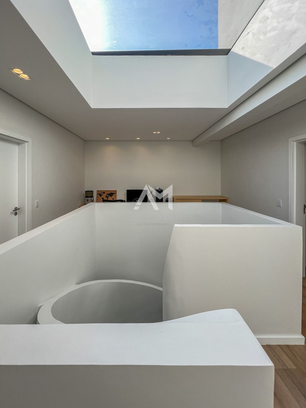 A escada helicoidal faz parte da arquitetura, trazendo charme e elegância ao imóvel