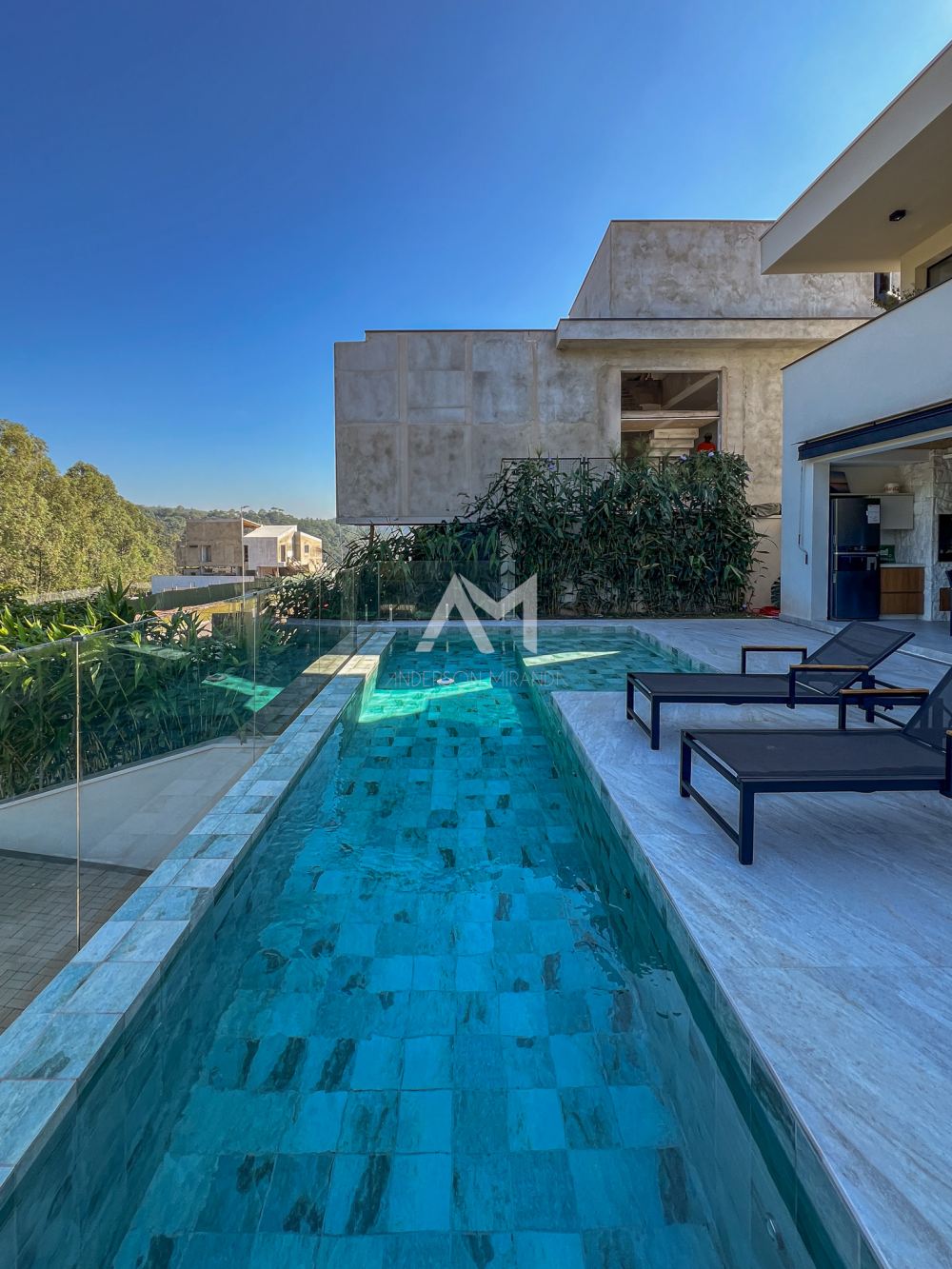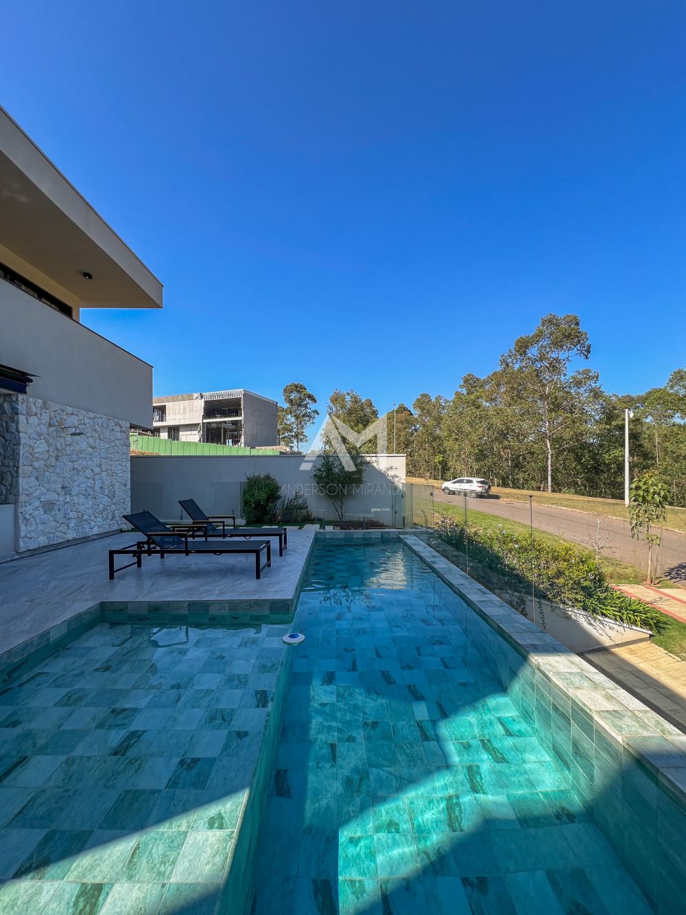 Piscina com prainha e aquecimento solar.