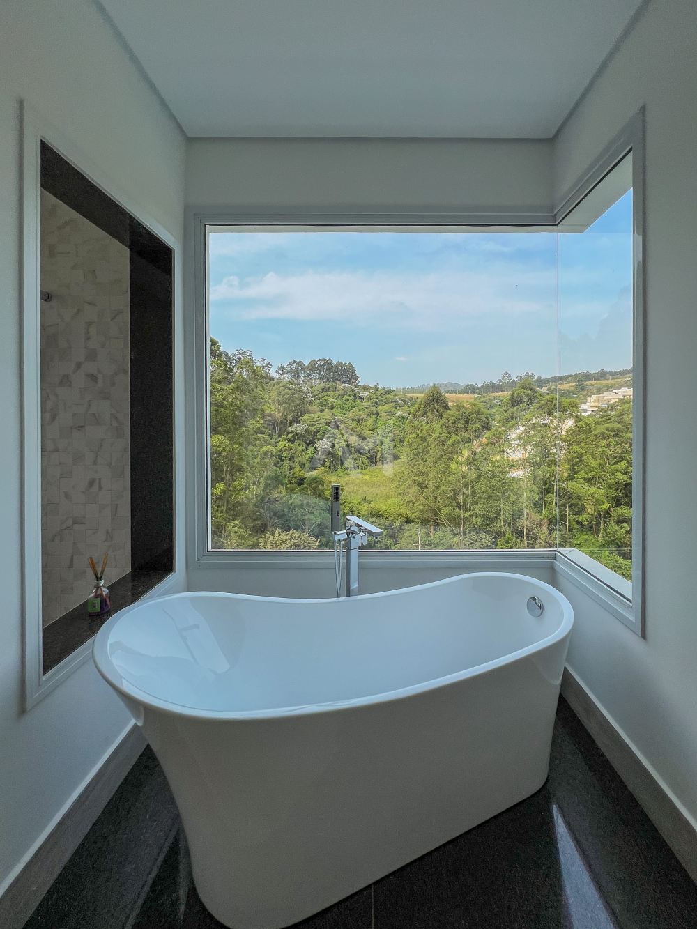 1-Suite master com closet, banheira com vista permanente e porta balcão automatizada