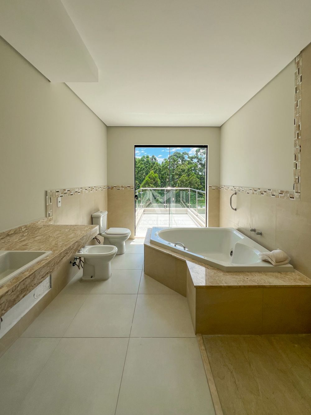 Suíte master oferece um closet espaçoso e um banheiro duplo para maior privacidade e conveniência.