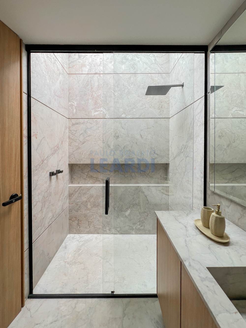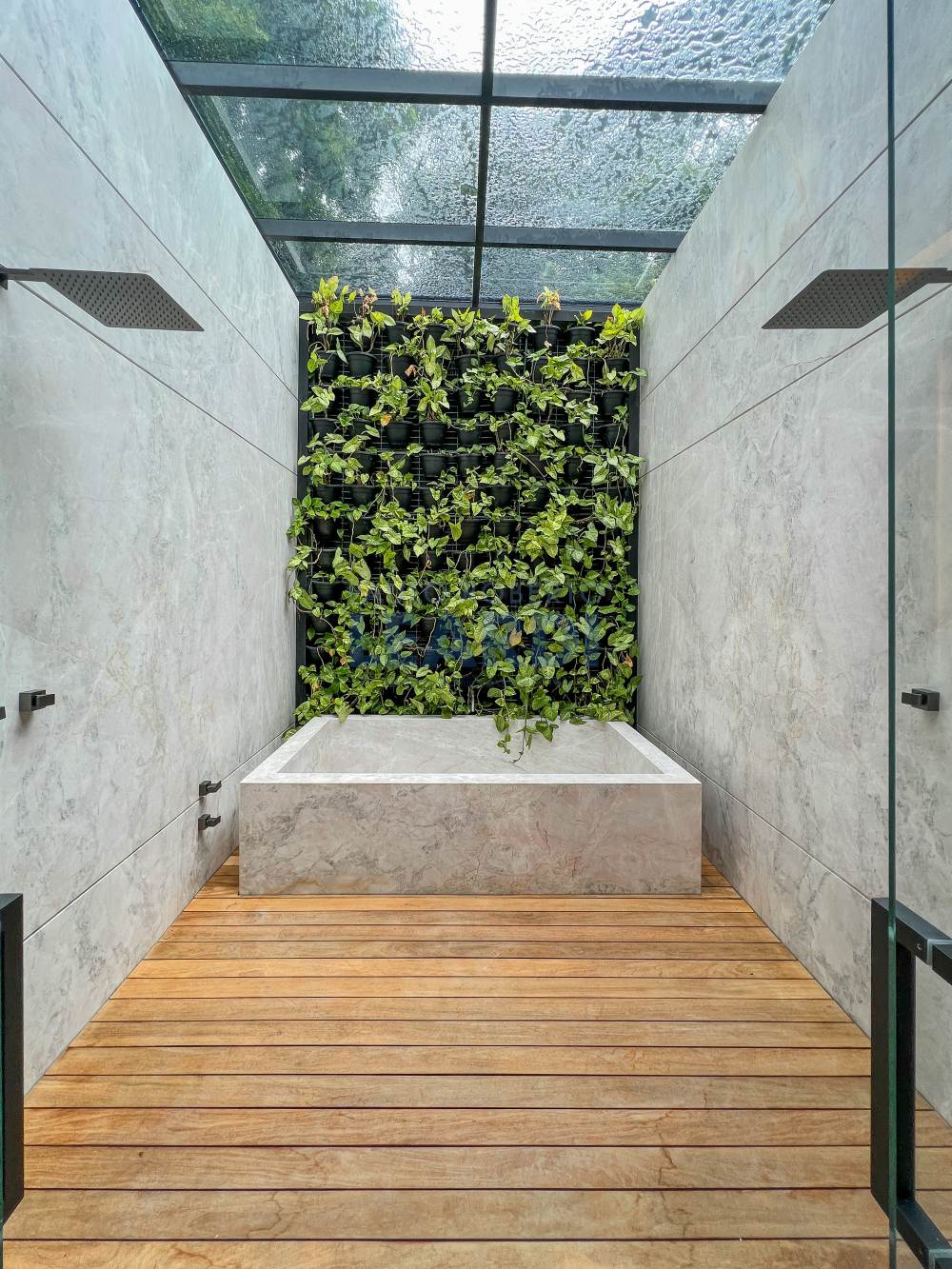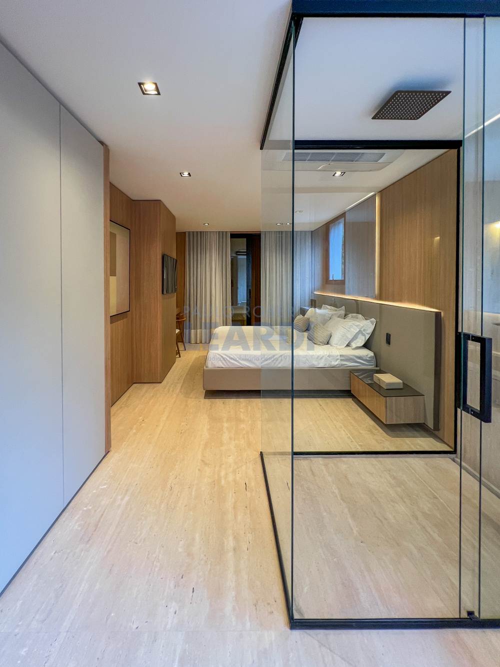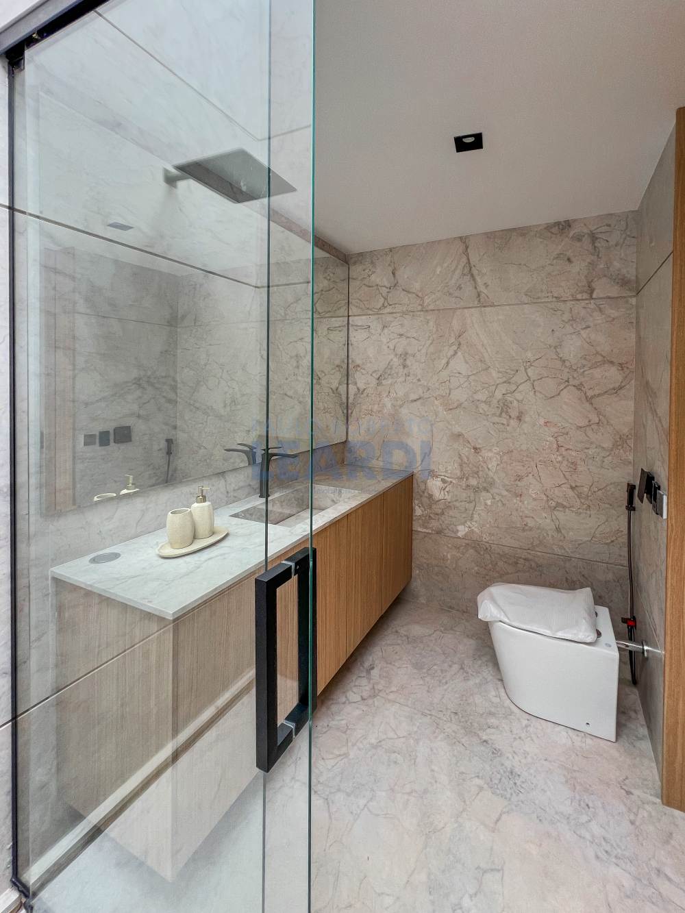 Suíte master com amplo closet e um banheiro extremamente luxuoso